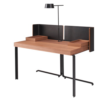 The finely drawn secretaire unites elements of traditional craftsmanship with modern design techniques, showcasing many precisely worked details, such as sliding storage chests, niches for paper and office equipment, sliding covers for cable tidies, a dock beneath the top for a multiway plug and a pivoting desk light.