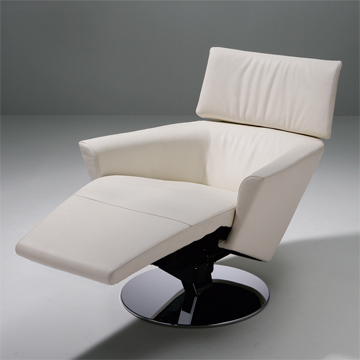 Conceiving the individual armchair punto it was possible to realise much comfort in a delicate form. The seating position of the rotatable punto armchair can be changed at user’s discretion by activating the integrated adjustment points. Thus the seating furniture is quickly changed into a lying or relaxing mode without great effort. The foot support, equipped with a battery-driven motor, increases lying comfort. The height of the backrest and headrest may be individually adapted to size. The look of the modern shell form harmoniously adapts to the most different living furniture. punto is intended to be a stand-alone piece of furniture without gaining too much dominance.