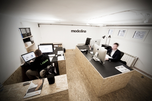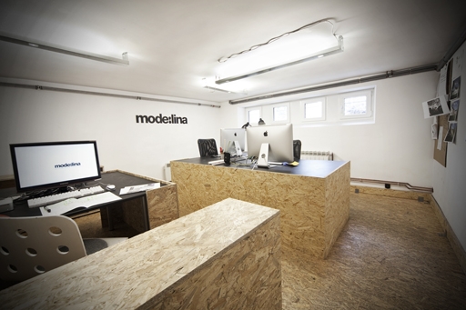這是mode:lina公司為他們自己設計裝潢的刨花板辦公室,地面,包括家具都有使用到。