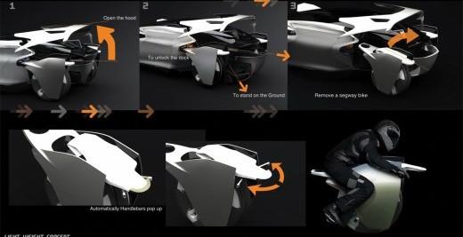 不像變形金剛那樣,只是后輪可以變一變而已,可能是在堵車的時候可以變成自行車,不過不解的是難道這車就扔道上了嗎?那也太有錢了吧!