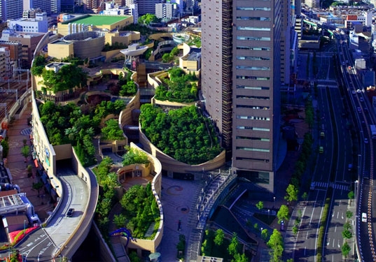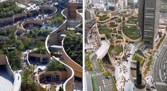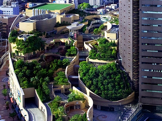 真個計劃包括一個30層的辦公樓和裙房商場,但真正讓難波商場特別的地方就在于他的屋頂公園。