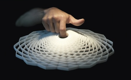 由 Alain Jost 設計。燈罩采用硅橡膠制成,耐熱性良好,可以和任何類型的燈泡搭配使用。燈罩的結構是基于Fibonacci 螺旋。Leonardo Fibonacci (1170-1250)是意大利的數學家,他在多次觀察松果,貝殼還有向日葵中心的螺旋后,他發現這些生物學構造都具有數學規則,在經歷了初始值,后面出現的數字(數量或距離)剛好是前兩個數字之和。Fibonacci 燈被放在一個黑色的包裝盒里面,并附有四種語言(德,法,日,英)的使用說明。