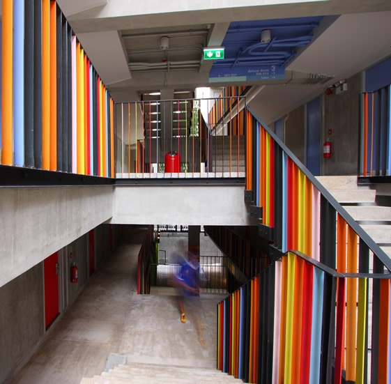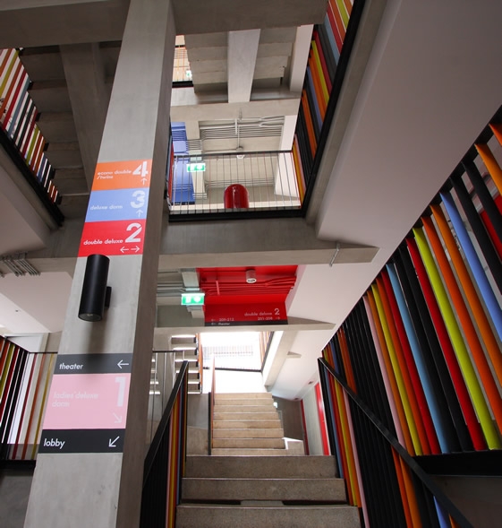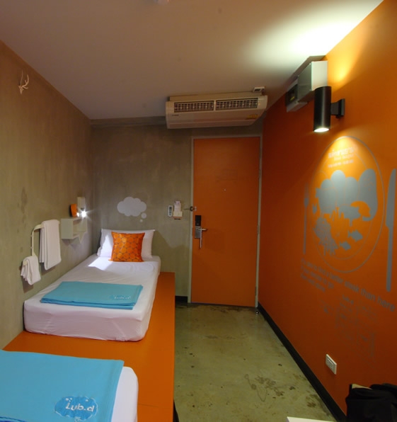 這個在曼谷的lub.d旅店,有很多房間里都是上下鋪的床,適合背包一族,有點像青年旅行社。這樣的定位,預算當然不多。不過面對很低的預算,設計一點也不縮衣節食,相反,有趣,明亮,迷人,讓你尖叫“好好玩”。由designlab設計。