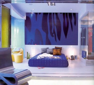 在這里我要特別強調一些比較特殊的空間環(huán)境的處理,比如臥室空間色彩的處理,我們都明白應該運用放松的色彩使居住者可以得到很好的休息,因此運用色彩心理學的原理,切忌大片純粹的紅、橙、黃色的色彩來裝飾臥室的墻壁、衣櫥等,在色彩心理學中純粹的紅、橙、黃色給人以興奮感,稱為興奮色,不適于在臥室大片使用;而運用暖色的柔和燈光處理比單純的色彩構成更能讓人感覺舒適。另外選擇深色木質臥室家具要比具有金屬感的家具更加舒服,木質材料本來就是很柔和很親切的天然材料,給人柔軟的感受。我們還可以適當運用些灰色以及低純度色彩給居住者以沉靜感和舒適感,從而促使居住者快速進入休息狀態(tài)。應該盡量避免大量的白色和黑色以及純度高的色,因為他們給人以緊張感,不適宜睡眠的色彩情感調節(jié)。