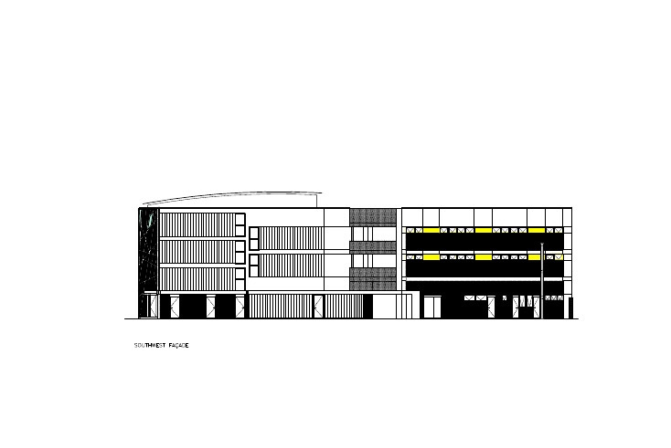 學校的外表皮由穿孔氧化銅板和玻璃組成。銅板的小孔可以阻止雨水,但是可以穿過光,因此,到了晚上,銅板就變得有些透明。