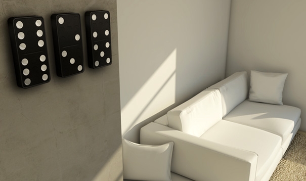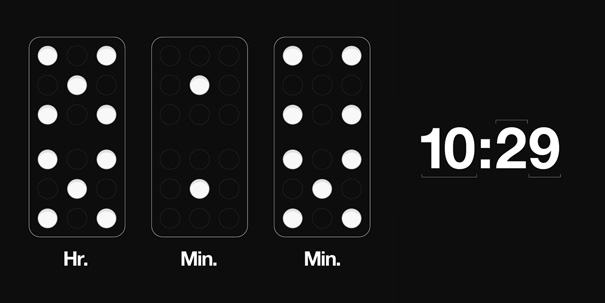 三副多米諾牌掛在墻上,一副是時鐘,兩幅是分鐘。