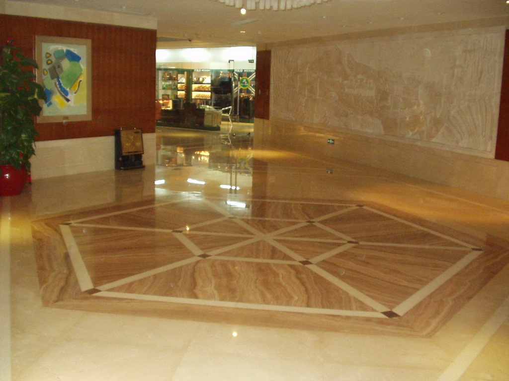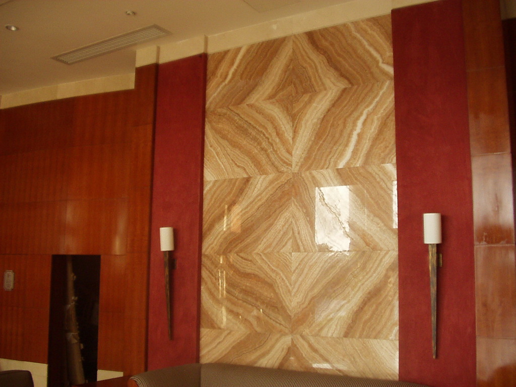 東莞長安蓮花山莊酒店是一家庭園山水式的五星級酒店,大廳和走廊地面及墻 面是石材對花應用,利用石材本身的紋理打造出一幅幅奇妙的圖案。 了解更多石材墻面設計,點擊專題“墻面設計與石材應用”