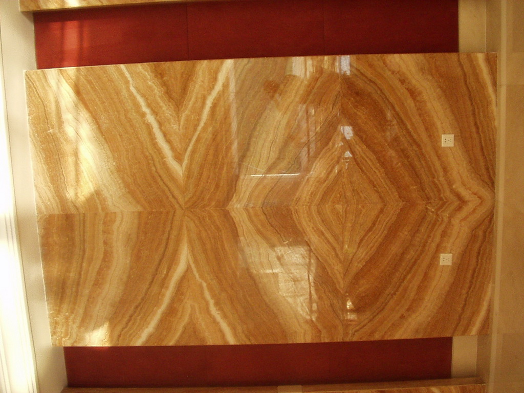 石材對花即把同一塊石板對剖之后往兩邊展開,所得兩片薄板能夠鏡像般地相 似,它給人一種的不同凡響的鏡像視覺沖擊力,彰顯石之高貴、優雅。