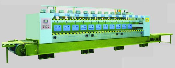 其主要優點是機床結構簡單,操作容易,投資少,但工人的老公強度大,所能加工的板材面積有限。由于通過工人眼睛觀察來確定不同粒度磨盤的更換,所以要求工人技術水平較高,而產品的最終質量也會因人而異。目前此設備主要用于異型板材的磨拋加工。多頭式連續磨拋機是一種新型先進的研磨拋光設備,它通過在生產線上安裝多個不同的磨塊和拋光塊,一次性完成石材的粗磨、細磨、精磨、拋光的全部加工過程。該機主要由磨頭、磨頭電機、磨盤傳動架、機架、自動傳送帶及傳動軸、總控制盤、磨盤控制盤、油壓站、噴水冷卻裝置等組成。連續多頭磨拋機加上的自動化程度高。操作人員的勞動強度小,生產效率高,可靠性好,生產損耗少,而且加工精度高,磨拋板材的質量穩定,該設備在國內外已被廣泛采用。