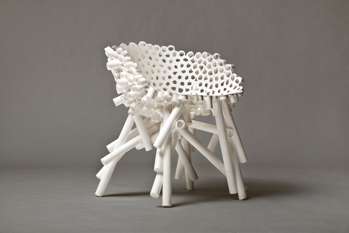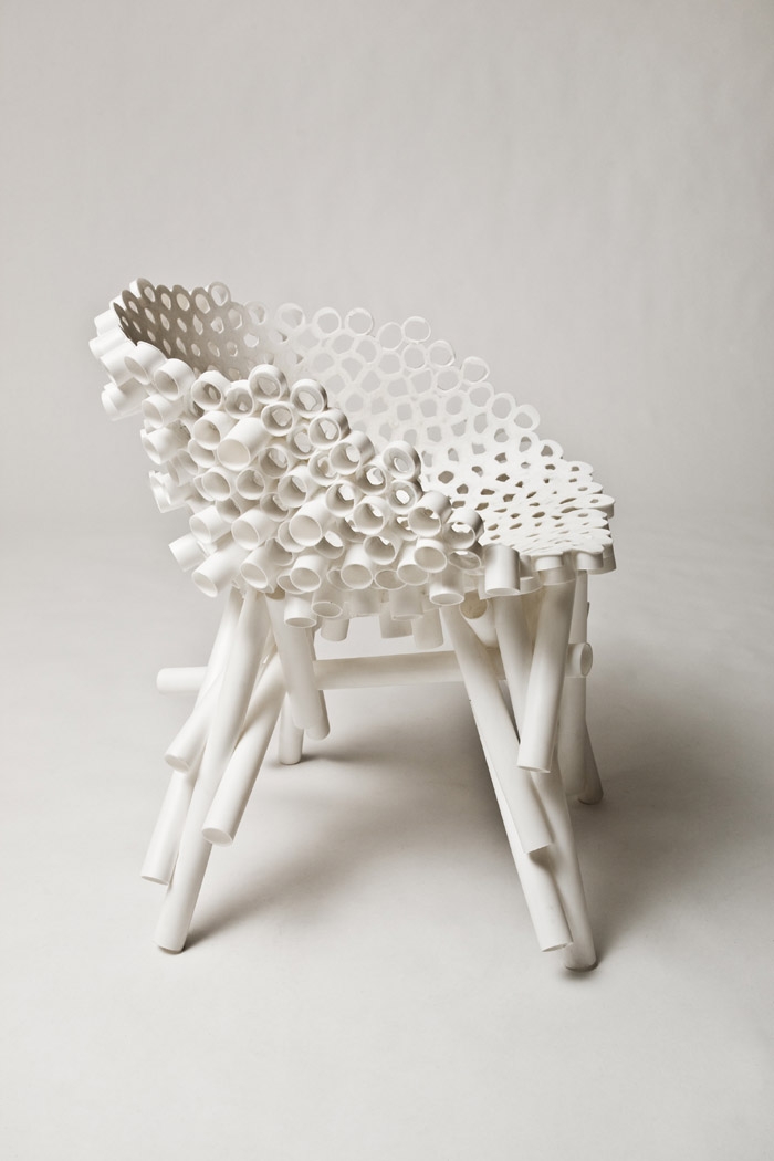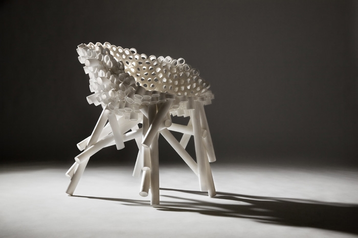 This second version of the PP Tube Chair tests the strength of the material and process by greatly reducing the amount of tube used.