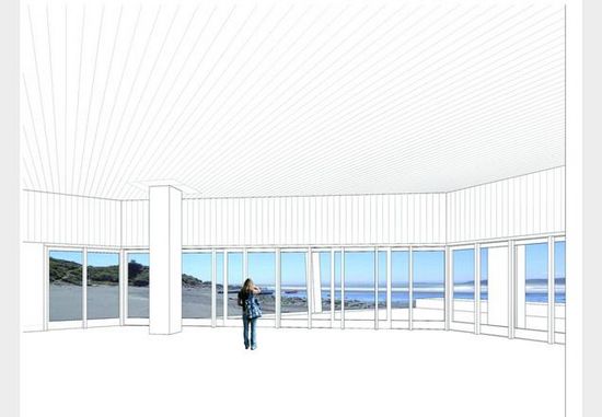 塞吉森-貝茨建筑事務所設計的展覽館采用了一種裸露的、粗涂的混凝土結構。其重量和材質與周圍巖石和海岸景物和諧。
