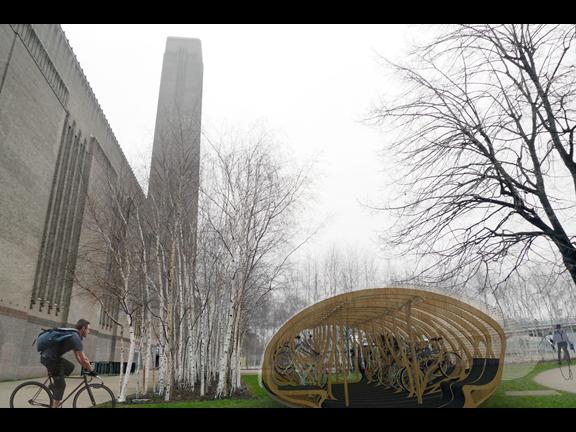 在由英國“建筑基金會”(Architecture Foundation)主辦的倫敦自行車棚設計競爭中,有5個方案進入了決賽。這種造價為10,000英鎊的自行車棚,用于倫敦南部南華克區的泰晤士河周邊區域(Bankside area of Southwark)。