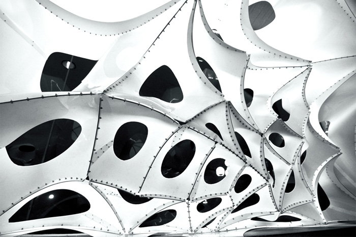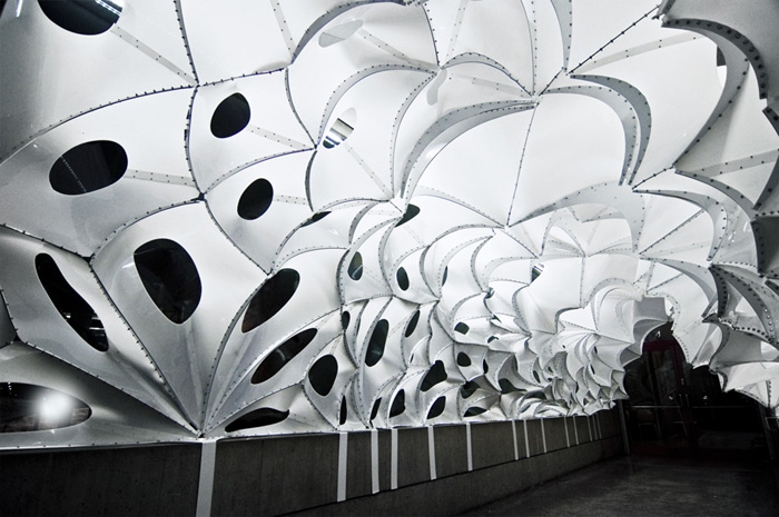 VoltaDom試圖拓展建筑概念“surface panel”的定義,通過強化雙曲拱頂面的深度(極限),并保持相對容易的制造及組裝。這也歸功于將復雜表面由其它許多簡單的面組合而成。