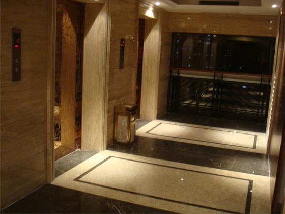 邦泰國際公寓位于琶洲會展核心區,是有著酒店式配套的高檔住宅區。走廊的地面和墻面使用天然石材裝飾,樸實無華又不失高貴典雅。