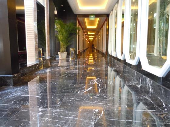 春暉園國際會議中心 走廊地面所用石材為:黑白根灰網紋