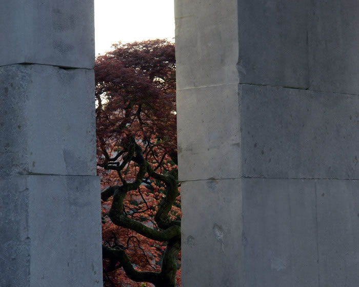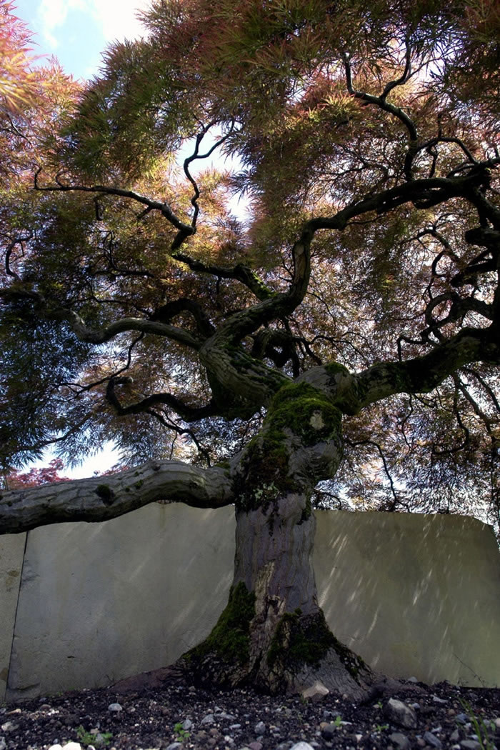 在這砂巖背景墻下看樹,這些大多數來自東方的樹似乎也具有了東方的禪意。
