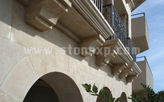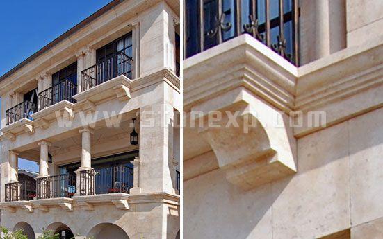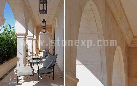 內部裝飾主要運用Massangis French 石灰巖,此外,圓柱,墻體,檐口,陽臺地板也用到此石材。整個別墅內部裝飾用到了10至12種石材:大理石,石灰巖,板巖,鵝卵石等。