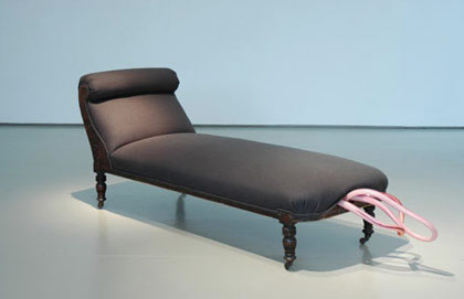 設計師Gitta Gschwendtner使用特別的設計手法,讓無生命的家具表現得像有生命似的。最近這一系列家具在barrett marsden畫廊展示著。第一張圖片想表達躺椅受傷了?腸子都跑出來了?