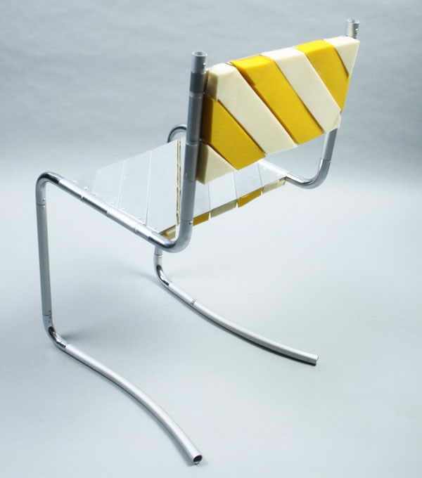 成對角線組合的線性斜面逐一連接在一起,形成了椅背和坐墊。而之所以能從堅硬質地的椅子變換成柔軟的沙發坐墊,則是依靠安裝在椅子內部的鉸鏈式部件,讓各個部分可以靈活移動。現階段,這款座椅還是概念實驗階段,還沒有完全投入生產。