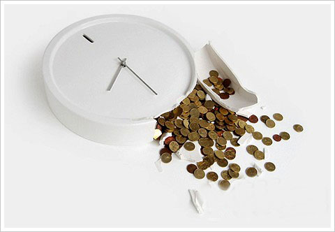 1、時間就是金錢,這是一個顛撲不破的真理. 應該沒有人會懷疑這句話,但是這個MoneyBox Clock卻十分真切地把時間和金錢聯系在了一起. 這個鐘表儲錢罐的設計如此簡約但是又如此精美,真的讓人很難下決心去把它敲破,來取出自己同樣很珍貴的積累。