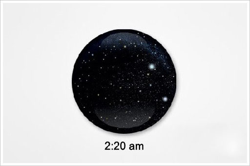 3、星空掛鐘,你上一次仰望夜空看到滿天的繁星是在什么時候呢? 城市里永遠沒有黑夜,永遠看不見那繁星似錦。Kai Yu設計的這個星空掛鐘也許能帶給我們一點奢侈的遐想?這款掛鐘的表面印著一片璀璨的星空,最閃亮的那兩顆星分別指示小時和分鐘,這兩顆星由藏在內部的LED燈珠發出亮光,兩顆星又如兩只閃亮的眼睛,和鐘表的圓弧構成一張大大的笑臉。