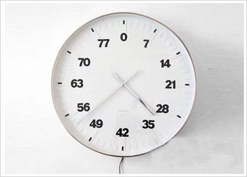 4、這塊兒叫做 Measure Time 的鐘表也許有點懷舊的氣息,因為這些線段讓84回憶起中學時候在數學課的演算紙上焦頭爛額的涂畫… 設計師把刻度到鐘表圓心的距離等分成12份,每一個刻度都用對應的數字乘以單位長度畫出一條線段,線段上又標示上這短距離對應的數字,從來沒有想過時間這個很抽象的概念居然可以用長短來丈量吧?