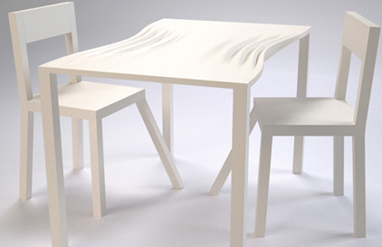 這兩組座椅都是特別為情侶設計的,第一組體現了情侶間不能控制的互相吸引,互相試探的過程。第二組小凳呈現難分難舍狀態,體現情侶的情至深處無法自拔。兩組都是造型簡約卻在細節處又透著曖昧之意。