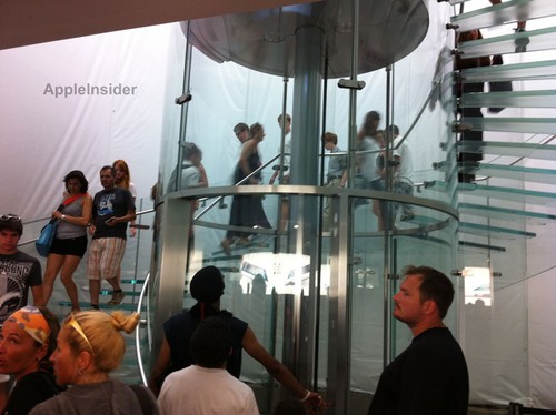 為了不影響用戶進入到店內,蘋果搭建了一個臨時的灰色夾板墻,并留下了空間供消費者進入到店里。這家零售店在2006年5月開張,是紐約市最為火爆的蘋果零售店。
