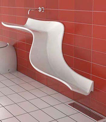 與傳統(tǒng)面盆不同,這款產(chǎn)品并沒有設(shè)計(jì)下水口,而是通過蜿蜒曲折的主體設(shè)計(jì)將廢水直接通過地漏排出。不僅外形美觀,富于創(chuàng)意。而且下半部分還可以用來沖洗拖把。