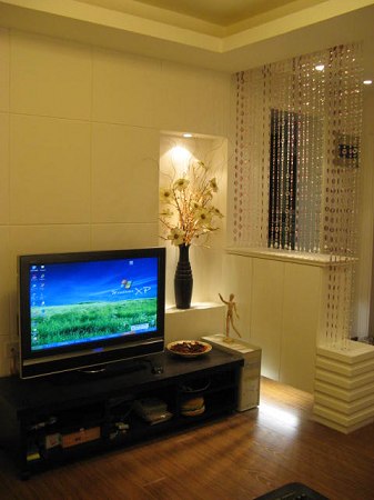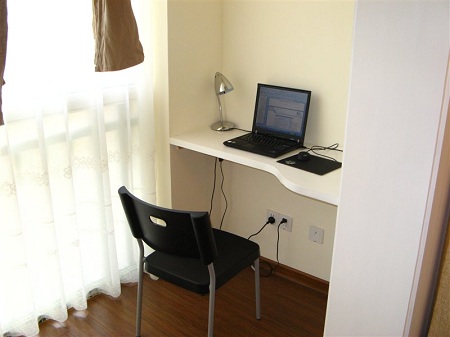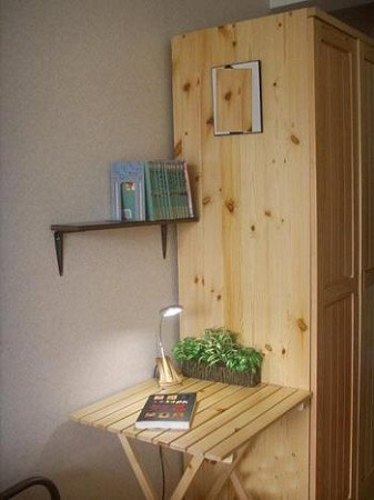 超簡潔的電腦臺,應該是泥瓦工在硬裝的時候砌的。相當實用,在小屋里一點不覺得煩瑣。