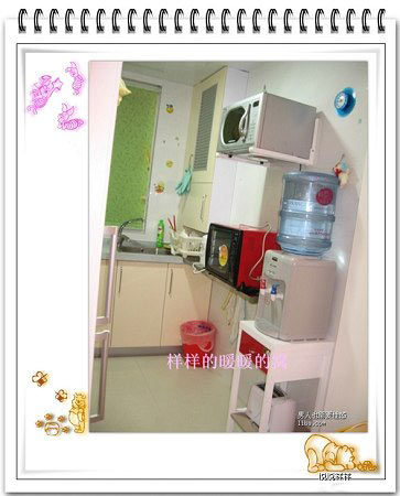 廚房的設計相當與眾不同~。不過走路的時候不會碰到頭或肩膀吧,微波爐會不會覺得自己長了對小翅膀。