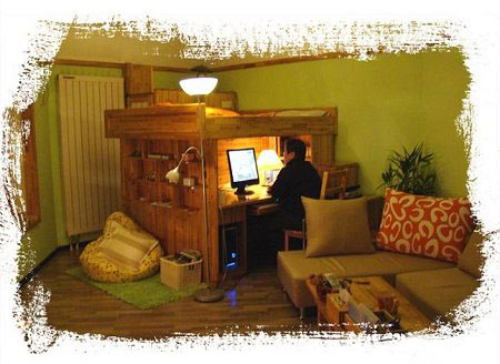 書柜和書桌一體很常見,連床也連在里面確實很少見。這么做,的確節省了很多空間。