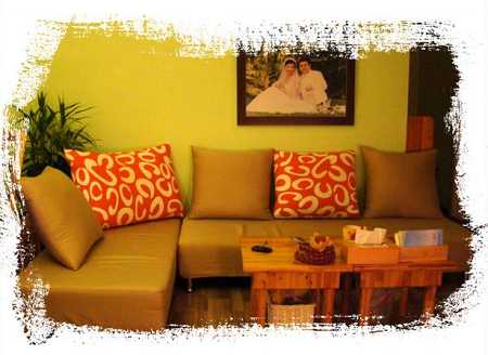 客廳與廚房的銜接作的很到位。那么自然,那么多姿多彩~~窗簾與沙發的美妙結合,氣氛相當溫馨。