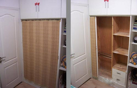 很多家庭都選擇用門簾來代替柜門,以此來節省空間。