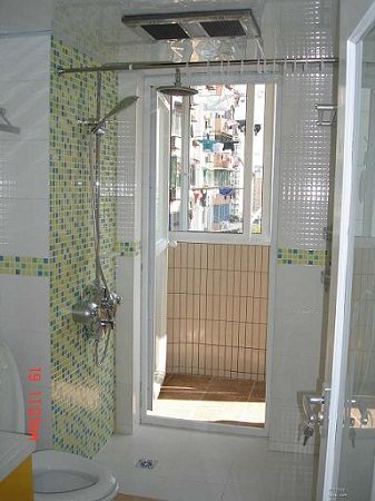 這個浴室在開在陽臺口的,設計相當獨特!很通風,洗曬衣物也很方便。