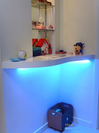 這個玄關,是很多網友想要的,可以做鞋柜用,下面又做抬高,裝射燈,很美觀,上面也可以放置裝修品什么的,估計自己家的木匠也可以制作吧。