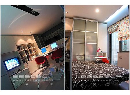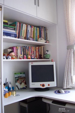 這個小房間的房型結構很一般,但是需要提一下的就是這個組合柜子,強大儲藏空間除外,還很牢。小小的臥臺上還有個小吊頂,相當費心思哦。邊上的衣櫥也配合的恰倒好處。