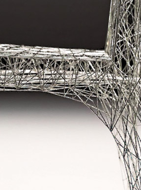 這把網格椅是由許多細鐵絲纏繞而成的,周身布滿2000余處連接點,顯得十分輕靈。只不過,要是將它和實木椅子擺在一起可能會讓人產生眼花的感覺,感覺自己仿佛置身于CAD場景當中呢。