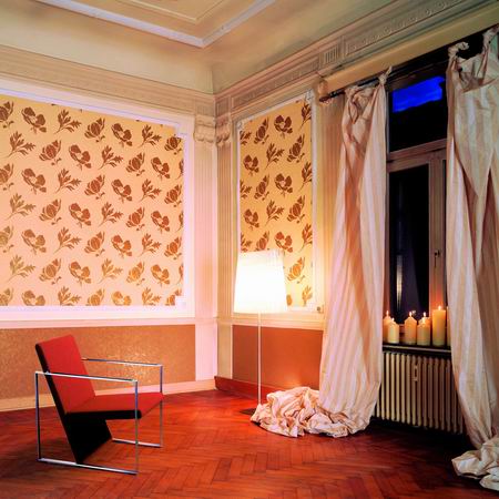 壁紙上的褶皺,看似隨心所欲,而它們在墻面上的投影卻讓壁紙的立體感頓生。這種不規則的褶皺是在墻紙加工過程中一體成型的,因為不規則,也帶來了每一面墻紙的獨特性。另外,這種褶皺墻紙有抗靜電功能,比一般墻紙更具防塵效果。