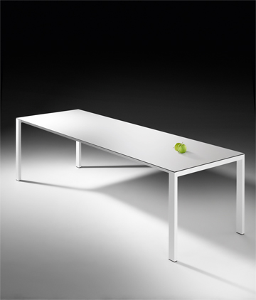 The author Thomas Mann loved to be portrayed sitting at his writing desk. After all, here he sat every day, so this piece of furniture was an expression of his person and his creativity. “lean” is a desk that offers its user great leeway for interpretation. Extraordinary clarity is expressed in its form and by its name, which confirms the understatement and the philosophy that the design embodies. The concept of designer Richard Wassmann was to reduce the desk to its essence without compromising function or stability. The form, achieved by applying innovative technology, is thus reduced to the desktop and four legs. The frame is made of powder-coated steel and consists of two trestles screwed to the top at each end. The design is an interplay of form and material, producing an inspiring desk with flowing lines. By avoiding any form of decoration, this free-standing desk displays intriguing visual lightness – it almost seems to float. Also the functional essence of the desk is discreet, yet present. The desktop, a panel of black 4-mm phenolic resin, is finished with bonded steel edging, and a choice of surface finishes is offered. To equip the desk for everyday use, various office accessories can be attached to the edging. Thus the desk easily blends into many individually designed interiors. With its sleek and refined appearance, “lean” subtly redefines the lines the desk