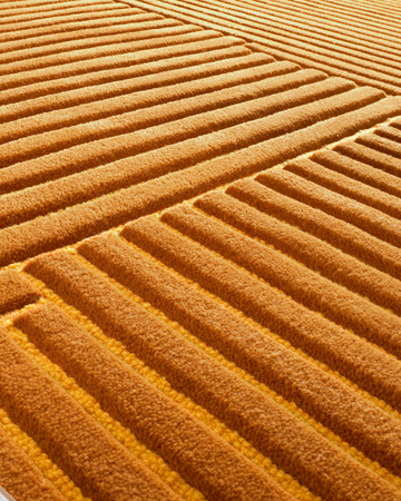 Zag displays the theme of “lines” to its best advantage by way of skilful handicraft work. Diagonal lines of pure new wool which meet in the centre of this carpet seem to interfere with each other. As a lower lying loop, the fine lines of Zag are tufted. A higher velvet pile produces the harmonious interplay of the structure creating a relief effect which gets its distinct and incomparable character due to elaborate carving.