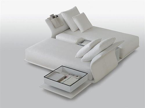 由Patricia Urquiola設計的這款沙發床,其功能變化可滿足主人夜間和白天的不同需要,可謂多用途沙發。白天,它是一款寬大舒適的布藝沙發;夜晚,它可變形為雙人床!即使家里有多位客人來過夜,也可輕松接待。