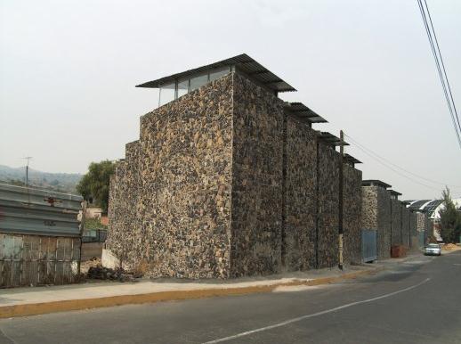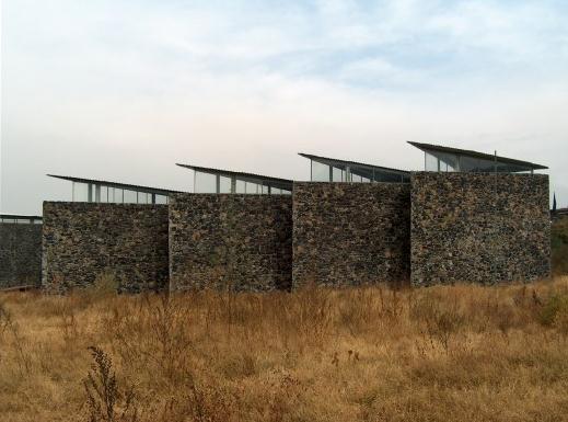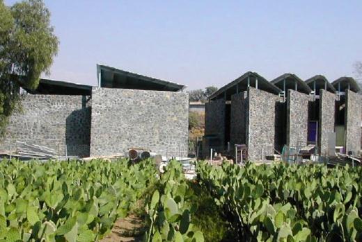 這個項目受場地形狀的限制:一個蜿蜒的防水渠道與筆直的大道形成對比。最終一個L形的墻壁與場地的幾何形式相融合,屋頂向著北側張開,以間接地獲得光照。在獨立支撐的墻壁表面是當地的玄武巖石,一個輕質的,獨立的金屬結構被抬高,柱子和屋頂由C部分鋼鐵擱柵和金屬薄片組成。窗戶框架是模塊化的,由最基本的元素組成,它們獨立運行或是集體運行。上層的窗戶延伸至建筑邊緣成為垂直的窗戶,鳥瞰附近的種植園。在這個既定的像木虱一般的形式內,建筑如同一個集裝箱,內部的空間可以用于各種用途,如木工,鋼鐵工藝或是繪畫等。