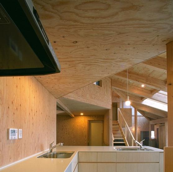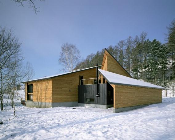 這是由日本事務(wù)所hiroshi horio設(shè)計的位于日本Bihoro的一個住宅,這是一個公共的模型住宅,由當?shù)氐沫h(huán)境部門發(fā)起并推行,它被當成是二十一世紀的生態(tài)住宅,這是一個兩層的住宅,一個獨立支持的結(jié)構(gòu),可以輕松容納新增家庭成員。住宅由三個三角形體量組成,設(shè)計出發(fā)點是城市中經(jīng)常見的公共住宅項目,建筑不斷旋轉(zhuǎn)漸漸遠離作為公共空間的公共地面,這個空間將不同的室內(nèi)連接,通過將一層區(qū)域覆蓋黑色金屬材料,公共項目看上去就像是被插入在木質(zhì)的體量內(nèi)。