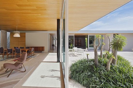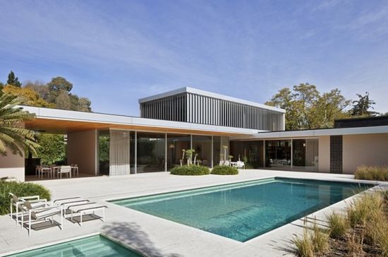 這個住宅設計是對一系列現代住宅發展過程中出現的不同形式和建筑線條演變現象的一種探索,住宅被設計成人造的供住戶觀察大自然和與景觀近距離接觸的亭子結構,住宅圍繞開闊的景觀排布,結果生成一個L形的平面布局,它有一個房間的寬度,從起居餐廳空間發散出來的兩個軸線相互交叉,所有的房間都沿著泳池邊緣分布,朝著美好的公園視野。