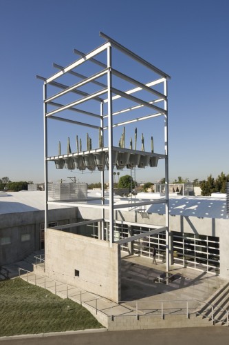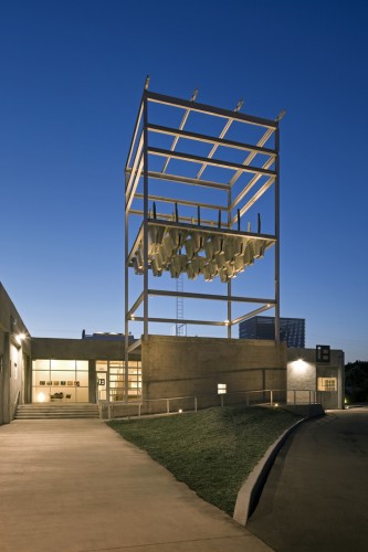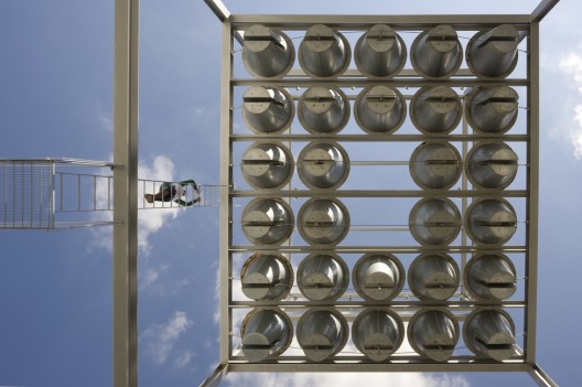 倉房附近是一個巨大的鋼鐵框架,由瓦楞鋼鐵包圍,高50英尺,這里原來是一個工業出版社的辦公空間。現在這個閑置的結構暴露出破舊不堪的鋼鐵支撐結構和混凝土墻塊,設計師最大限度地發揮它們的再利用價值,將其打造為一個室外的聚集場所。