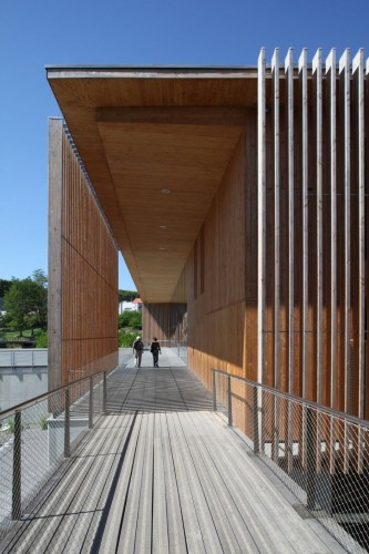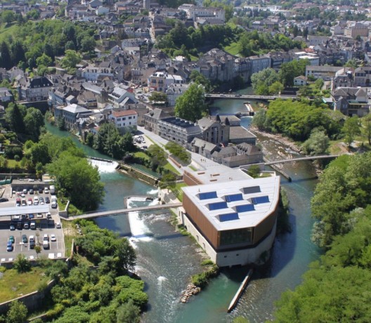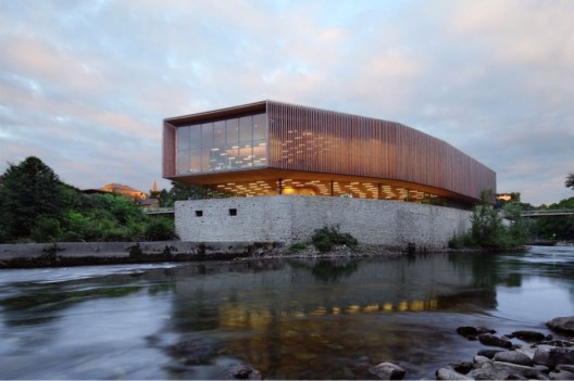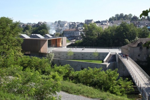 這是一個(gè)美麗的項(xiàng)目,它是由一個(gè)工廠改造而來,位于法國Oloron Saint Marie,是一個(gè)更大規(guī)模的城市規(guī)劃項(xiàng)目的一部分,這個(gè)項(xiàng)目的目的是為了將業(yè)已廢棄的場地與城市中心相連,為建筑注入新的活力,并突出場地與生俱來的自然環(huán)境。新建的多媒體中心建在原有工廠的石頭基礎(chǔ)之上,它優(yōu)雅地懸浮于原有結(jié)構(gòu)之上,包含閱讀室,管理辦公室,建筑表面覆蓋透明輕盈的木質(zhì)格子。結(jié)構(gòu)末端主導(dǎo)的玻璃窗為人們提供絕佳的視野。