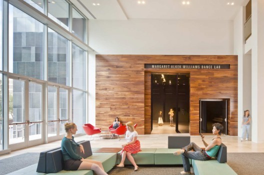 休斯敦芭蕾舞蹈中心展示出休斯敦對表演藝術的專注,它是舞蹈行業一個活生生的廣告牌。Geler的設計靈感來源于古典時期舞臺的構造,它通過巨大的窗戶展示教學和排練,而窗戶對面是雙高體量的排練工作室。項目是休斯敦芭蕾的總部,并涵蓋它的學院部分。這個六層的建筑包含九個舞蹈工作室,一個舞蹈實驗室,還有藝術、管理和支持設施。它也是美國最大的舞蹈教育機構。