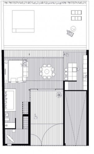 這是一個不透明的住宅,它給人堅硬的巖石感,粗造的表面,結實,非透明,離街道很近,樸實的墻面上只有很小的開口,幾乎是一道不可逾越的墻壁,建筑想要表達的思想也因此變得很明顯,即一個獨立于街道的非透明住宅。