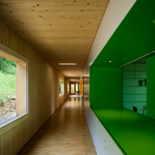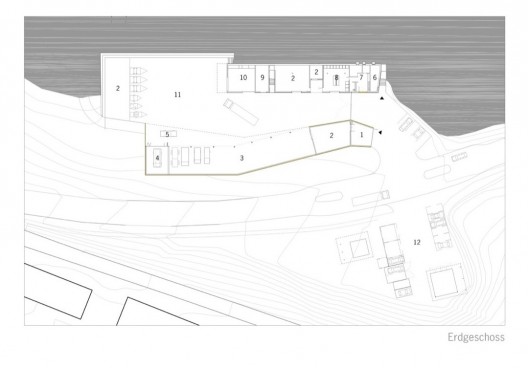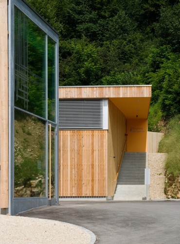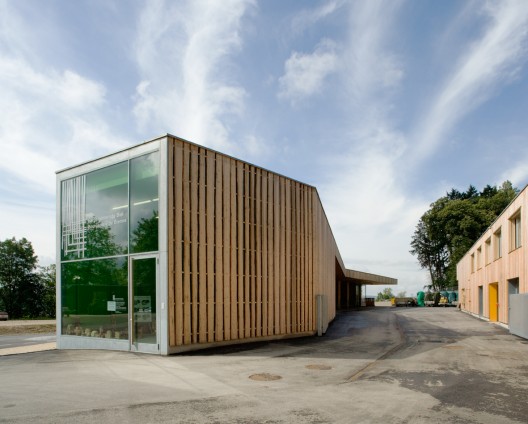 這個運行中心綜合體延伸到街道的兩側,為保證運行中心的良好運轉,這個項目將主要部分集中到了綜合體的一側,兩個建筑形成一個院落,從而生成巨大的室外空間,但同時又保留空間的緊湊感。建筑隨著場地走向排布,兩個建筑形成長長的形狀,末端形成一個院落。建筑的殼體是用天然的木質板面做成,營造出垂直的形態,與周圍的森林對話。